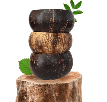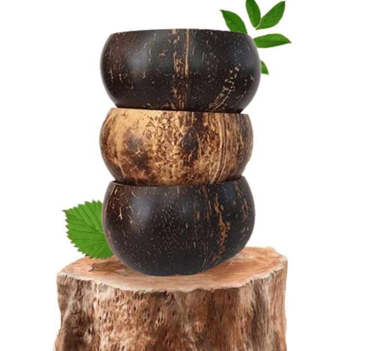 Bowls únicos hechos a partir de cáscaras de coco, trabajados por artesanos peruanos.