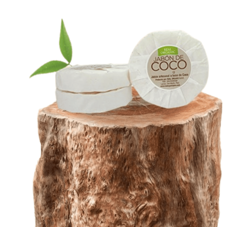 Jabones artesanales, hechos a partir de aceite de coco, para uso corporal.